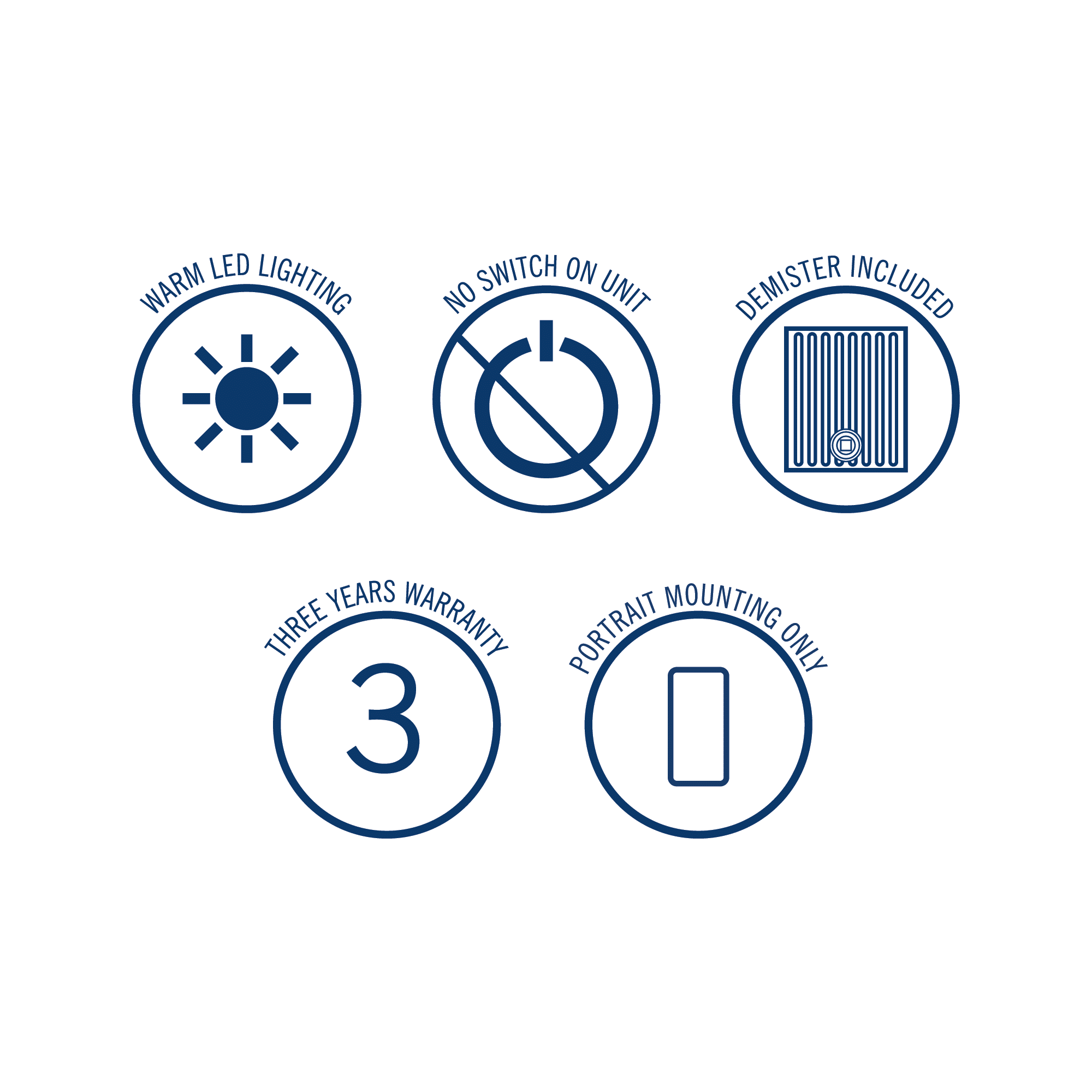 The AS500W includes a mirror demister which is a thin heating pad that is installed behind the mirror to prevent the mirror from fogging up. Please note the mirror demister is attached to the mirror and controlled simultaneously with the lights via an external switch.